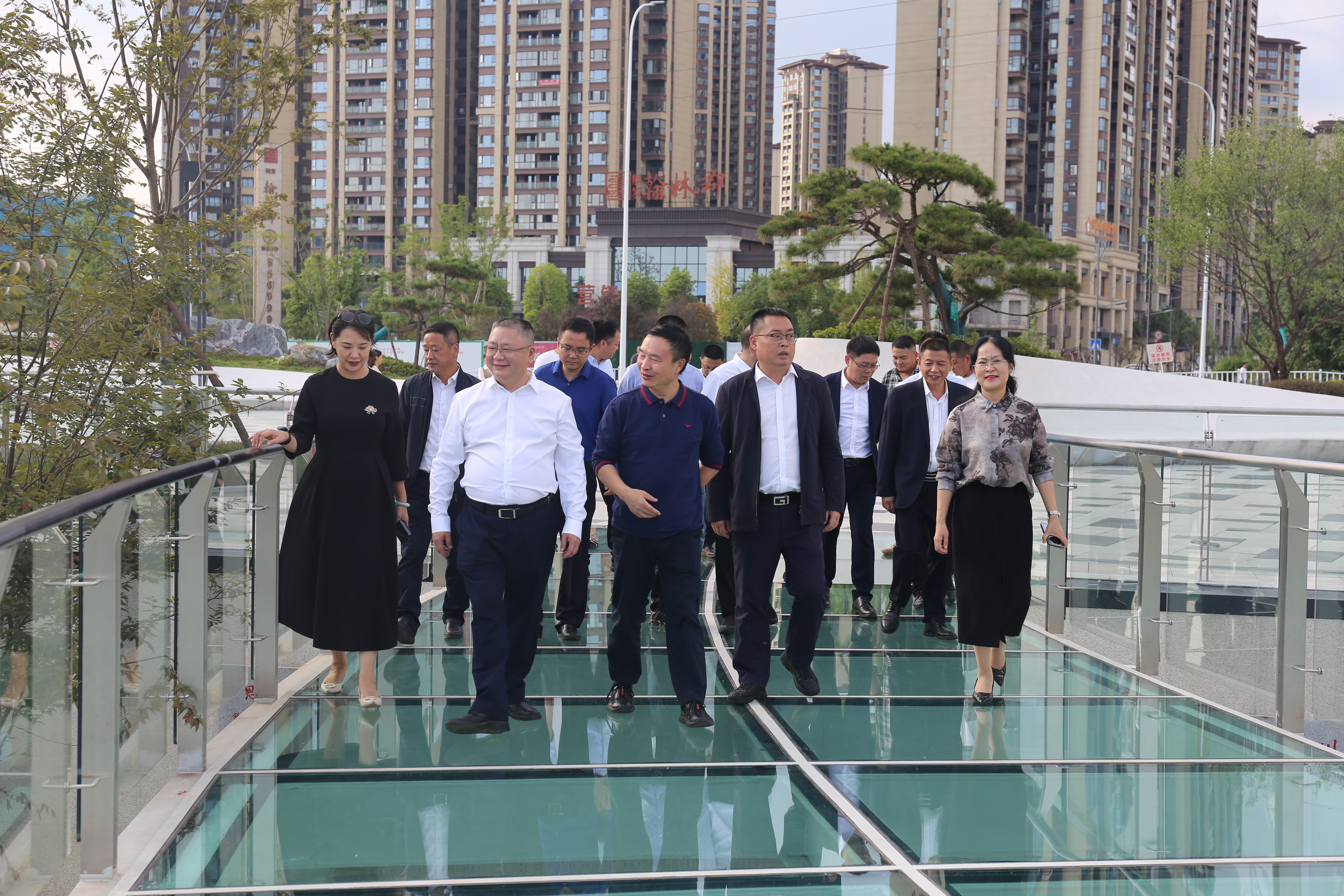 交流座談會之前,王勁一行參觀考察了兩江控股集團下屬子公司興綠園林公司建設(shè)的九獅路及高鐵站前廣場項目,詳細了解該項目設(shè)計理念、設(shè)施配套、施工實際效果等情況,對充分展示了瀘州特色和深厚的酒文化底蘊的“干杯”建筑給予了高度評價。